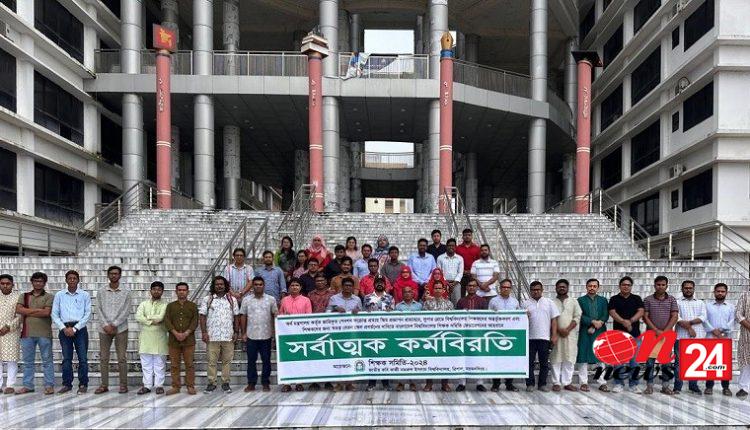 একই দাবিতে গত ১ জুলাই(সোমবার) থেকে সর্বাত্মক কর্মবিরতি পালন করছে বিশ্ববিদ্যালয়ের কর্মকর্তা-কর্মচারীরা।আন্ত:বিশ্ববিদ্যালয় অফিসার্স ফেডারেশনের আহ্বানে বিশ্ববিদ্যালয়ের সব ধরনের দাপ্তরিক কার্যক্রম থেকে বিরত থেকে পূর্বঘোষিত সর্বাত্মক কর্মবিরতি পালন করছে তারা।