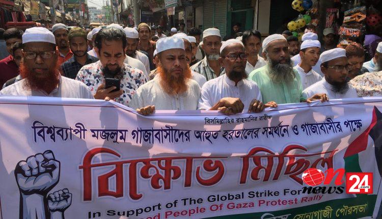 ইসরায়েলের ইহুদি বাহিনী কর্তৃক ফিলিস্তিনের মুসলমানদের গণহত্যার প্রতিবাদে সোনাগাজীতে খেলাফত মজলিসের বিক্ষোভ মিছিল ও প্রতিবাদ সমাবেশ
