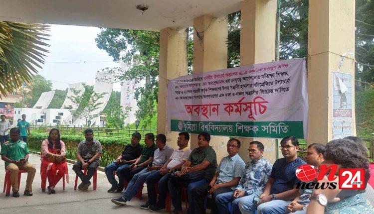 কুমিল্লা বিশ্ববিদ্যালয় (কুবি) উপাচার্য অধ্যাপক ড. এএফএম আব্দুল মঈন এবং কোষাধ্যক্ষ অধ্যাপক আসাদুজ্জামান এর নেতৃত্বে অছাত্র ও বহিরাগত কর্তৃক শিক্ষকদের উপর হামলার প্রতিবাদে উভয়ের পদত্যাগের দাবিতে তৃতীয় দিনের মতো অবস্থান কর্মসূচি পালন করেছেন কুবি শিক্ষক সমিতি।