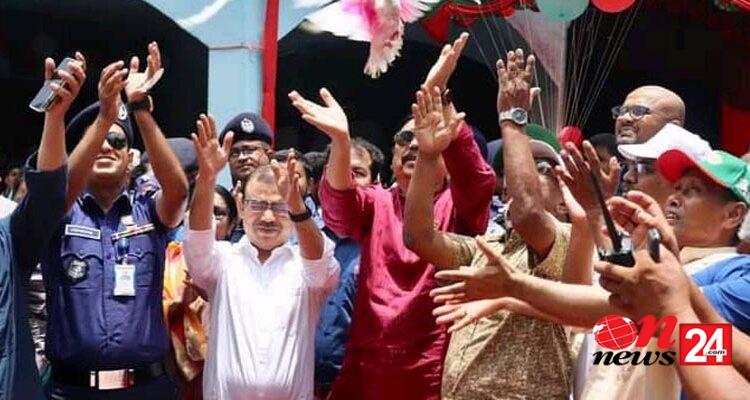 বক্তব্য রাখেন, জেলা আওয়ামী লীগ সভাপতি দেওয়ান কামাল আহমেদ, এ্যাড. মমতাজুল হক, আবুজার রহমান, আরিফ হোসেন মুন, আমজাদ হোসেন, কামরুজ্জামান জামান, ওয়াদুদ রহমানসহ স্থানীয় নেত্রীবৃন্দ। উপজেলা আওয়ামী লীগের উদ্যোগে বঙ্গবন্ধু চত্তর থেকে পদ্মা সেতুর দৈর্ঘে ম্যারাথন দৌঁড় এবং পৌর আওয়ামী লীগের উদ্যোগে মিষ্টি বিতরণ করা হয়।