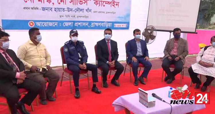 চলমান করোনাকালীন পরিস্থিতিতে মাস্ক পরিধানের গুরুত্ব নিয়ে ব্রাহ্মণবাড়িয়ায় জেলা প্রশাসনের আয়োজনে “নো মাস্ক, নো সার্ভিস” বিষয়ক এক ক্যাম্পেইন অনুষ্ঠিত হয়েছে। বুধবার সদর উপজেলার সেন্দা গ্রামস্থ ডিসি পার্কে আয়োজিত এই কর্মশালায় প্রধান অতিথি ছিলেন জেলা প্রশাসক হায়াত উদ দৌলা খান।