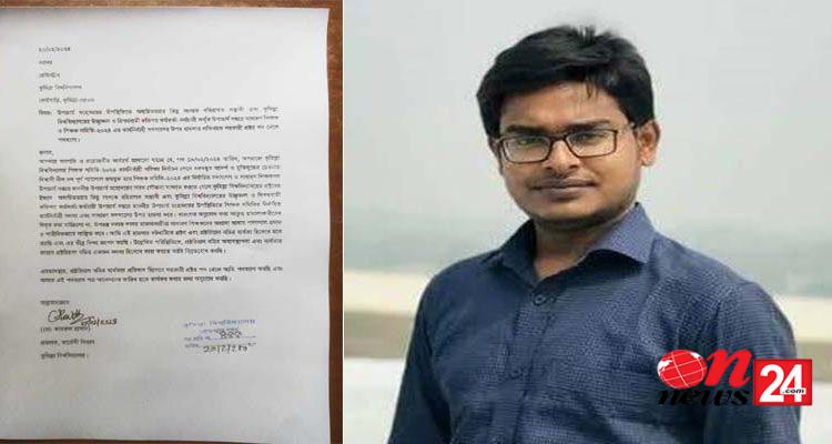 মঙ্গলবার (২০ ফেব্রুয়ারি) মো. কামরুল হাসান স্বাক্ষরিত ও রেজিস্ট্রার দপ্তরের সিল সম্বলিত এক চিঠির মাধ্যমে বিষয়টি জানা যায়।