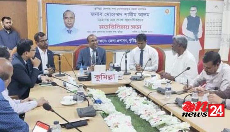 রবিবার (১১ ডিসেম্বর) দুপুরে কুমিল্লা জেলা প্রশাসক সম্মেলন কক্ষে সাংবাদিকদের সাথে মত বিনিময় সভায় জেলা প্রশাসক মোহাম্মদ শামীম আলম এ কথা বলেন। এ সময় অতিরিক্ত জেলা প্রশাসক (সার্বিক) মোহাম্মদ শাহাদাত হোসেন, অতিরিক্ত জেলা প্রশাসক (রাজস্ব) মো: কাবিরুল ইসলাম খানসহ প্রশাসনের উধ্র্বতন কমৃকর্তারা উপস্থিত ছিলেন।