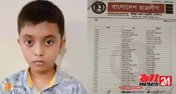 কুমিল্লায় চতুর্থ শ্রেণির ছাত্র নবগঠিত উপজেলা ছাত্রলীগের সদস্য