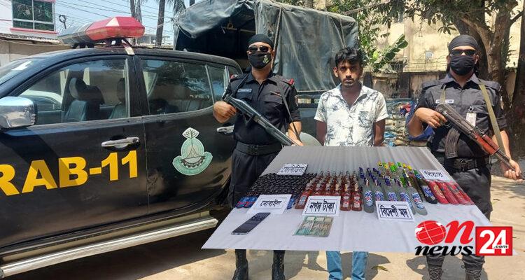 কুমিল্লার সদর দক্ষিনের বাটপাড়া এলাকা থেকে বিয়ার, ফেন্সিডিল এবং বিদেশীমদসহ বিক্রম চন্দ্র দাস নামে এক মাদক ব্যবসায়ীকে আটক করে র্যাব-১১।