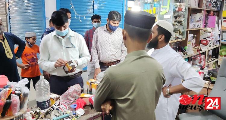 এ সময় দেখা যায়, লোডশেডিং এর খবর শুনে চার্জার লাইট, বাল্প ও ফ্যানের মূল্য কৌশলে বাড়িয়ে বিক্রি করা হচ্ছে। রিচার্জেবল বাল্পের গায়ের মূল্য মুছে বেশি দামের স্টিকার লাগিয়ে বিক্রি করায় ভাই ভাই ইলেকট্রনিক্স এন্ড সার্ভিস সেন্টারকে ১০ হাজার টাকা, অযৌক্তিক মূল্যে টেবিল ল্যাম্প বিক্রির প্রস্তাব করায় এশিয়া ওয়াচ এন্ড ইলেকট্রিককে ৫ হাজার টাকা এবং অননুমোদিত বিদেশী গুড়ো দুধ বিক্রি করায় হাজী খোকন স্টোরকে ৫ হাজার টাকাসহ মোট তিন প্রতিষ্ঠানকে ২০ হাজার টাকা জরিমানা করা হয়।