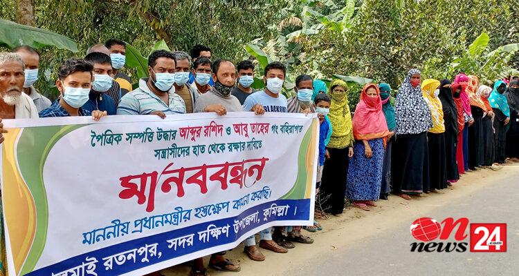 কুমিল্লা সদর দক্ষিণে পৈত্রিক সম্পত্তি উদ্ধারের দাবিতে মানববন্ধন