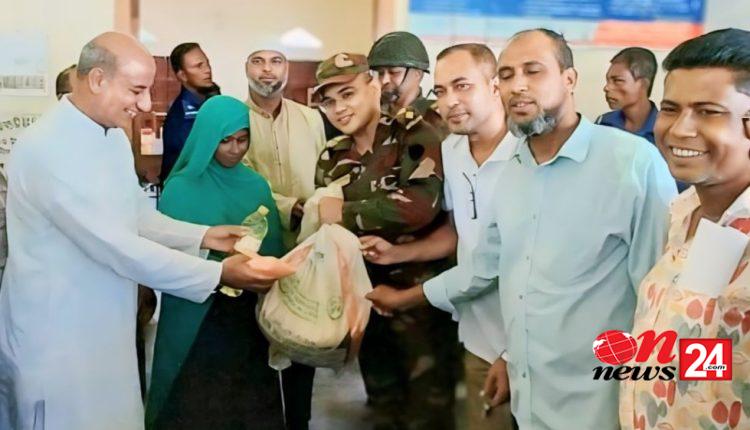 কুলাউড়া জয়চন্ডীতে সেনাবাহিনীর তত্বাবধানে খাদ্য সহায়তা প্রদান