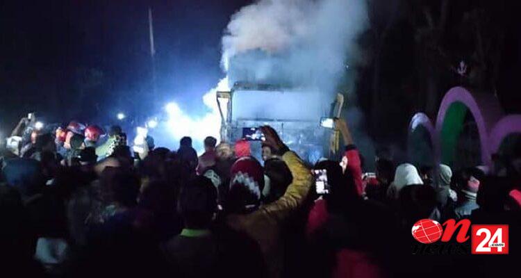 কুষ্টিয়ার দৌলতপুর উপজেলার কুষ্টিয়া-প্রাগপুর সড়কে ট্রাকের চাকায় পিষ্ট হয়ে ২ মোটর সাইকেল আরোহী নিহত হয়েছে। এসময় উত্তেজিত জনতা ট্রাকটিতে আগুন ধরিয়ে দেয়। উত্তেজিত জনতা ঐ সড়কটি ৩ ঘন্টা অবরোধ করে রেখেছিল।