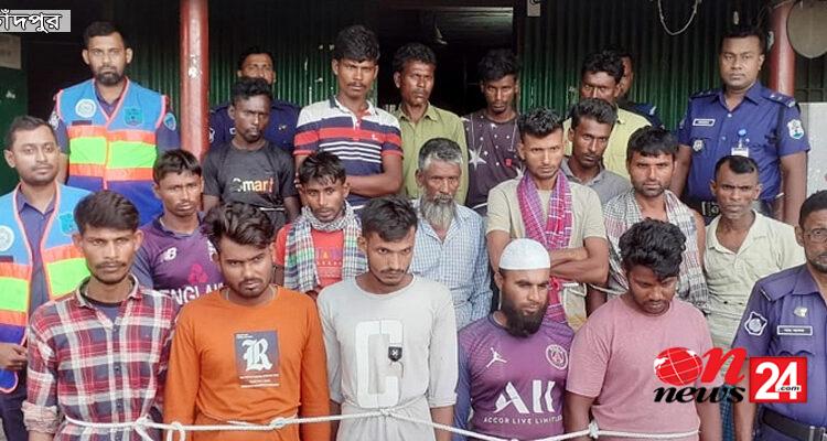 চাঁদপুরে ইলিশ ধরায় ৪১ জেলে আটক