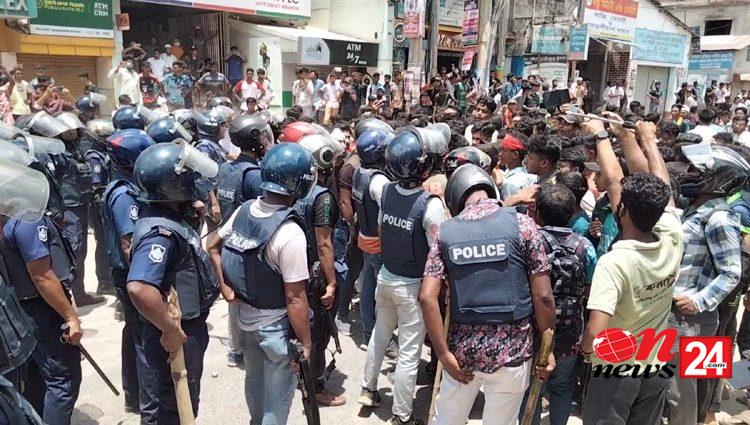 সেখানে তারা অবস্থান নিলে পুলিশ তাতে বাধা দেয়। পরে পুলিশী বাধা উপেক্ষা করে আন্দোলনকারীরা অগ্রসর হতে থাকলে পুলিশের সাথে আন্দোলনকারীদের ধাওয়া-পাল্টা ধাওয়ার ঘটনা ঘটে।