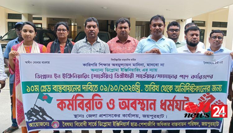 জয়পুরহাটে সার্ভে ডিপ্লোমাদের ১০ম গ্রেড বাস্তবায়নের দাবিতে কর্মবিরতি অবস্থান কর্মসূচী