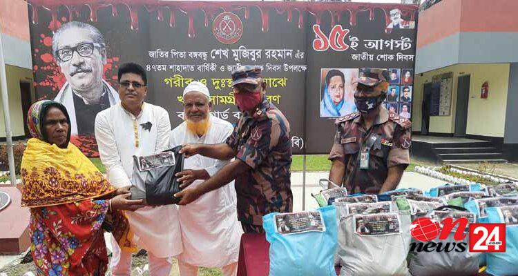 জাতির পিতা বঙ্গবন্ধু শেখ মুজিবুর রহমানের ৪৭তম শাহাদাত বার্ষিকী এবং জাতীয় শোক দিবস উপলক্ষে দুস্থদের মধ্যে খাদ্য সামগ্রী বিতরণ করেছে বর্ডার গার্ড বাংলাদেশের (বিজিবি)।