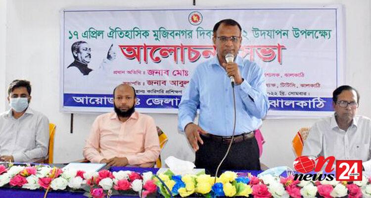 ঝালকাঠি সদর বিকনা সরকারি কারিগরি প্রশিক্ষণ কেন্দ্রে ঐতিহাসিক মুজিবনগর দিবস ২০২২ উদযাপন উপলক্ষে আলোচনা সভা অনুষ্ঠিত হয়। আজ সকালে অনুষ্ঠিত আলোচনা সভায় প্রধান অতিথি ছিলেন জেলা প্রশাসক মোঃ জোহর আলী।