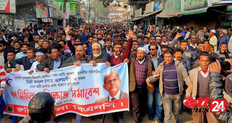 গণতন্ত্র পুনরুদ্ধারে বিএনপি ঘোষিত ১০ দফা দাবি আদায়, দলের মহাসচিব মির্জা ফখরুল ইসলাম আলমগীর সহ সকল নেতা কর্মীর গেস্খফতার এবং হত্যার প্রতিবাদে গণমিছিল ও বিক্ষোভ সমাবেশ অনুষ্ঠিত হয়েছে মির্জা ফখরুলের নিজ নির্বাচনী এলাকা ঠাকুরগাঁওয়ে।