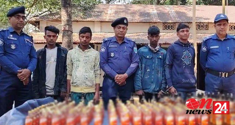তাহিরপুরে বিপুল পরিমাণে ভারতীয় মদ সহ আটক ৪ জন