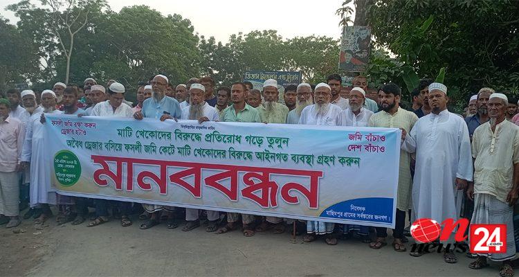 কুমিল্লার তিতাসে অবৈধভাবে তিন ফসলী জমি থেকে ড্রেজার দ্বারা মাটি কাটা বন্ধ করন ও পরিবেশ বিনষ্টকারীদের বিরুদ্ধে জরুরি ভিত্তিতে পদক্ষেপ গ্রহণের জন্য জগতপুর ইউনিয়নের ৪টি গ্রামের বাসিন্দারা মানববন্ধন করেছে।