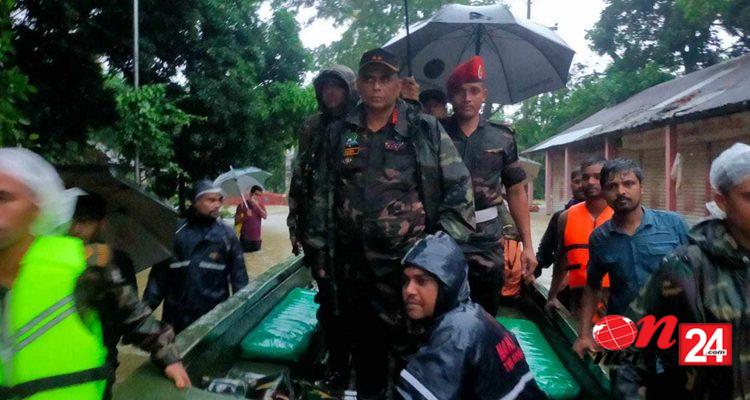 কুমিল্লা সেনানিবাসের ৩৩ পদাতিক ডিভিশনের জিওসি ও এরিয়া কমান্ডার মেজর জেনারেল জাহাঙ্গীর আলম বন্যাদুর্গত এলাকায় উপস্থিত থেকে উদ্ধার কার্যক্রম পরিচালনা করছেন।