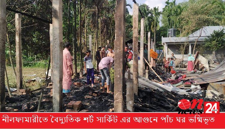 নীলফামারীতে বৈদ্যুতিক শর্ট সার্কিট এর আগুনে পাঁচ ঘর ভষ্মিভূত