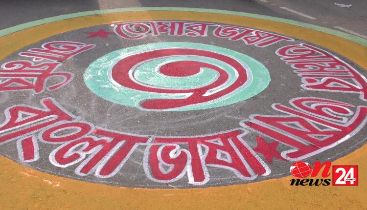 নড়াইলে তিন কিলোমিটার সড়ক জুড়ে নান্দনিক আল্পনা এঁকে ভাষা শহীদদের স্মরণ