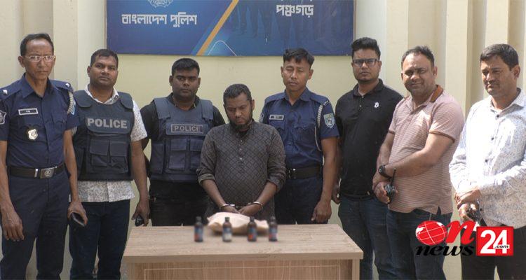 রোববার (১৭ মার্চ) রাতে পুরাতন পঞ্চগড় এলাকায় এশিয়া ডিস্টিলারিজ এলাকায় তার ছবি বাধাই ঘর দোকান থেকে ফেন্সিডিল বিক্রি করার সময় তাকে আটক করা হয়। সোমবার (১৮ মার্চ) দুপুরে সকল আইনি প্রক্রিয়া শেষে তাকে আদালতের মাধ্যমে জেলা কারাগারে প্রেরণ করা হয়।