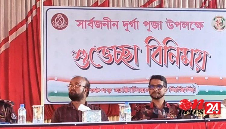 পঞ্চগড়ে শারদীয় দূর্গাপূজা উপলক্ষে সীমান্ত এলাকার সনাতন ধর্মাবলম্বীদের সাথে বিজিবির শুভেচ্ছা বিনিময়