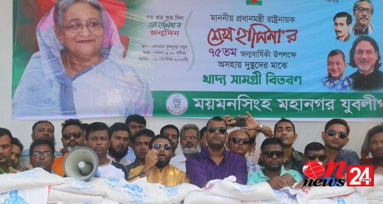 প্রধানমন্ত্রী শেখ হাসিনার ৭৬ তম শুভ জন্মদিন উপলক্ষে ময়মনসিংহ মহানগর যুবলীগের উদ্যোগে অসহায় দুস্থ মানুষের মাঝে খাদ্য সামগ্রী বিতরণ করা হয়েছে।