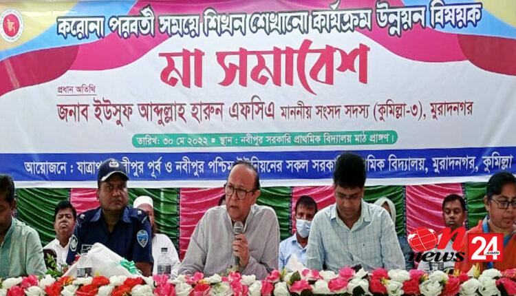 এমপি আলহাজ¦ ইউসুফ আবদুল্লাহ হারুন সোমবার দুপুরে কুমিল্লার মুরাদনগ উপজেলার নবীপুর সরকারি প্রাথমিক বিদ্যালয় মাঠে অনুষ্ঠিত মা সমাবেশে প্রধান অতিথির বক্তব্যে এসব কথা বলেন। উপজেলা শিক্ষা অফিসার ফওজিয়া আক্তারের সভাপতিত্বে এতে বিশেষ অতিথি ছিলেন, উপজেলা নির্বাহী কর্মকর্তা অভিষেক দাশ।