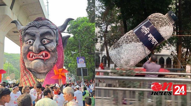 বর্ষবরণের শোভাযাত্রায় ফ্যাসিস্টের মুখাবয়ব ও ‘পানি লাগবে পানি’