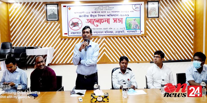বাগেরহাটের মোল্লাহাটে গতকাল বৃহস্পতিবার (২৮ অক্টোবর) উপজেলা কৃষি সম্প্রসারন অধিদপ্তরের আয়োজনে, উপজেলা পরিষদ মিলনায়তনে“জাতীয় সম্পদ রক্ষার্থে, ইদুর মারি একসাথে’ প্রতিপাদ্যের আলোকে মাস ব্যাপী (১১ অক্টোবর হতে ১০ নভেম্বর) পর্যন্ত জাতীয় ইদুর নিধন অভিযান উদ্বোধন করা হয়েছে।
