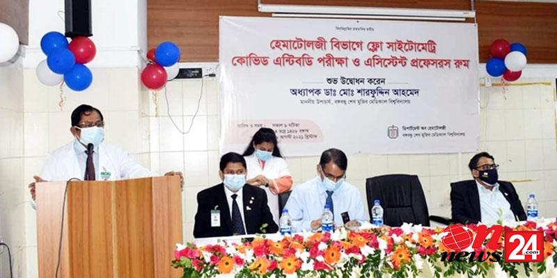 বঙ্গবন্ধু শেখ মুজিব মেডিকেল বিশ্ববিদ্যালয়ের হেমাটোলজি বিভাগে করোনাভাইরাসের অ্যান্টিবডি টেস্টের মেশিন ও কর্নারের উদ্বোধন করা হয়েছে।