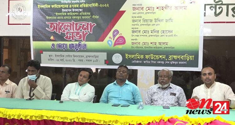ইসলামিক ফাউন্ডেশনের ৪৭ তম প্রতিষ্ঠাবার্ষিকী উপলক্ষ্যে ব্রাহ্মণবাড়িয়ায় “ইসলামিক ফাউন্ডেশন প্রতিষ্ঠাসহ ইসলামের প্রচার-প্রসারে বঙ্গবন্ধুর অবদান” শীর্ষক আলোচনা সভা ও দোয়া অনুষ্ঠিত হয়েছে।