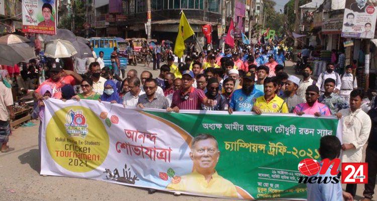 খেলবে মোরা, জিতবে মুকুল’ এই শ্লোগানে ময়মনসিংহের ঐতিহ্যবাহী মুকুল নিকেতন উচ্চ বিদ্যালয়ের সাবেক প্রধান শিক্ষক আমীর আহমেদ চৌধুরী রতন স্যারের স্মরণে চ্যাম্পিয়ন ট্রফি ক্রিকেট টুর্ণামেন্ট উদ্বোধন উপলক্ষে ময়মনসিংহে আনন্দ শোভাযাত্রা অনুষ্ঠিত হয়েছে।