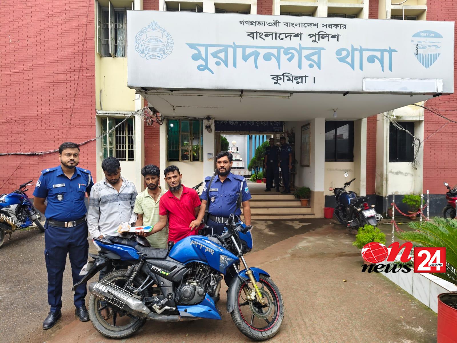 পুলিশি তথ্য মতে, মাদক বিরোধী অভিযান চলাকালে মুরাদনগর থানার ওসি প্রভাষ চন্দ্র ধরের সার্বিক দিকনির্দেশনায় এসআই মোঃ রফিকুল ইসলামের ফোর্স অভিযান পরিচালনা করে। মুরাদনগর থানাধীন নবীপুর পশ্চিম ইউনিয়নের বাজারে মসজিদের দক্ষিণ পাশে পাকা রাস্তার উপর সন্দেহজনক ভাবে একটি মোটরসাইকেল তল্লাশি করা হয়। তখন আরোহীদের নিকট হতে ১৪০ পিস ইয়াবা উদ্ধার করে পুলিশ।