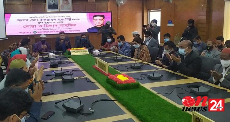 মেয়র মোঃ ইকরামুল হক টিটুর সুস্থতা কামনায় ময়মনসিংহ সিটি কর্পোরেশনের আয়োজন দোয়া ও মিলাদ মাহফিল আয়োজন করা হয়। মঙ্গলবার বেলা ২টায় শহীদ শাহাবুদ্দিন মিলনায়তনে এ দোয়া ও মিলাদ মাহফিল অনুষ্ঠিত হয়।
