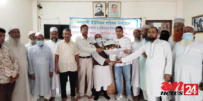 বিনা প্রতিদ্বন্দ্বিতায় দ্বিতীয়বার নব নির্বাচিত সনমান্দী ইউনিয়ন পরিষদের সুযোগ্য সফল চেয়ারম্যান জাহিদ হাসান জিন্নাহকে দৌলতপুর দাখিল মাদ্রাসার শিক্ষক,শিক্ষিকা ও কর্মচারীদের পক্ষ থেকে শুভেচ্ছা ও অভিনন্দন জানান।