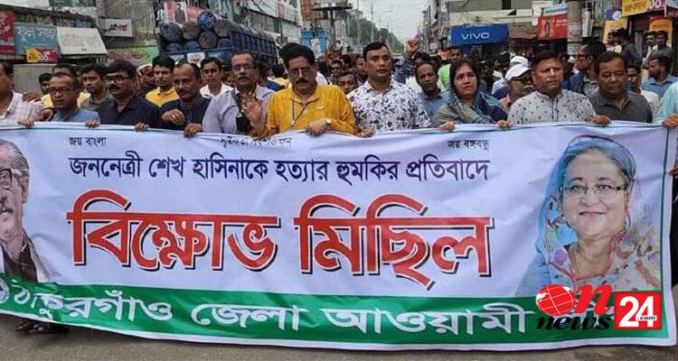 শেখ হাসিনাকে হত্যার হুমকির প্রতিবাদে ঠাকুরগাঁওয়ে আ’লীগের বিক্ষোভ