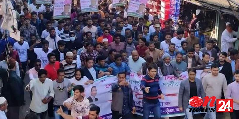 অপরদিকে সকাল ১০টায় উপজেলা বিএনপির সাধারণ সম্পাদক জামাল উদ্দিন সেন্টু, পৌর বিএনপির সভাপতি আবুল মোবারক ভিপি দুলাল, উপজেলা ছাত্রদলের সদস্য সচিব নুর আলম সোহাগ ও পৌর ছাত্রদলের আহবায়ক রিংকুর নেতৃত্বে একটি বিক্ষোভ মিছিল কলেজ রোড থেকে শুরু হয়ে পৌর শহরের প্রধান প্রধান সড়কগুলো প্রদক্ষিণ শেষে কলেজ রোডে গিয়ে শেষ হয়।
