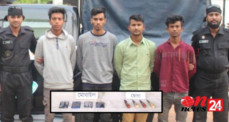 গ্রেপ্তারকৃতরা হলো- নারায়ণগঞ্জের সোনারগাঁয়ের পেরাব এলাকার মো. দুলাল ভূইয়ার ছেলে মো. আবির হাসান, একই এলাকার জহিরুল মোল্লার ছেলে মো. অপু মোল্লা, আবু হানিফ মোল্লার ছেলে রাফিউল ইসলাম দিপ্ত ও ভরৎ গ্রামের আব্দুর রহমানের ছেলে মো. রাহাত হাসান মেহেদী।