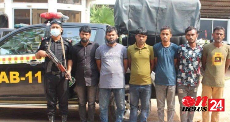 নারায়ণগঞ্জের সোনারগাঁ থেকে বিদেশী অস্ত্রসহ ডাকাত চক্রের ৬ সদস্যকে আটক করেছে র্যাব-১১