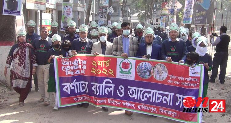 মুজিব বর্ষের অঙ্গিকার রক্ষা করব ভোটাধিকার এমন প্রতিপাদ্য নিয়ে দিনাজপুরের হিলিতে র্যালী ও আলোচনাসভার মধ্য দিয়ে জাতীয় ভোটার দিবস পালন করা হয়েছে।