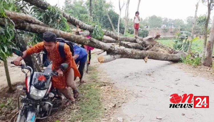 এদিকে বড়বাড়ি ইউনিয়নের আধারদীঘি থেকে হরিণমারী যাওয়ার রাস্তায় গাছ ভেঙে পড়ে যান চলাচল বন্ধ আছে। কয়েকজনকে গাছ কেটে সরিয়ে রাস্তা স্বাভাবিক করতে দেখা গেছে।
