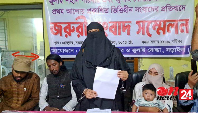 অপপ্রচারের প্রতিবাদে নড়াইলে জুলাই শহীদ রবিউল ইসলাম লিমনের স্ত্রীর সংবাদ সম্মেলন