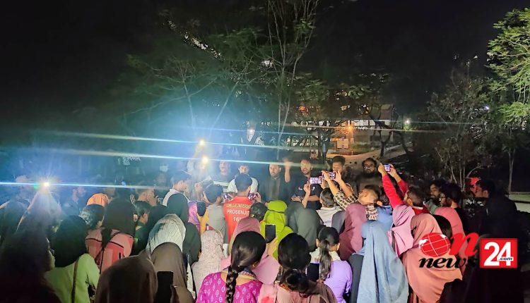 এ সময় শিক্ষার্থীরা ‘তুমি কে আমি কে, আছিয়া আছিয়া’ ‘ জ্বালো রে জ্বালো, আগুন জ্বালো’ ‘ধর্ষকের শাস্তি, মৃত্যু মৃত্যু’ ‘ধর্ষকদের আস্তানা, ভেঙে দাও গুড়িয়ে দাও’ ‘আসিফ নজরুল তুই আইন দে, নয়তো গদি ছাইড়া দে’ ইত্যাদি স্লোগান দিতে থাকেন।