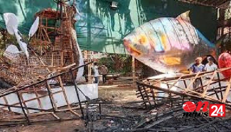 শনিবার (১২ এপ্রিল) সকালে চারুকলা অনুষদে সরেজমিনে গিয়ে এমনটি দেখা যায়। অনুষদের যেখানে মোটিফ তৈরির কাজ চলছিল সেখানে আগুন লেগে এগুলো পুড়ে গেছে বলে জানা যায়।