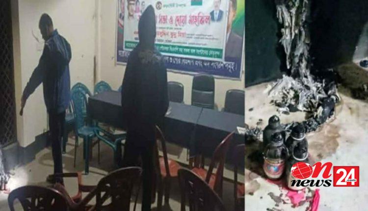 পুলিশ ও দলীয় সুত্রে জানাগেছে, মঙ্গলবার দিবাগত রাতে উপজেলা বিএনপির কার্যালয়কে লক্ষ্য করে বিপরীত দিক থেকে দুর্বৃত্তরা পেট্রলবোমা নিক্ষেপ করে। এ সময় একটি পেট্রলবোমা বিস্ফোরিত হলে কার্যালয়ের পশ্চিম দিকের জানালার একাংশ পুড়ে যায়। বিস্ফোরণের বিকট শব্দে আশপাশের বাড়ির লোকজন ও বাজারের নৈশপ্রহরীরা ঘটনাস্থলে ছুটে আসে। পরে তারা ফায়ার সার্ভিসকে খবর দেয়। ফায়ার সার্ভিসের কর্মীরা কার্যালয়ের তালা ভেঙে ভেতরে প্রবেশ করে আগুন নিয়ন্ত্রণে আনেন। খবর পেয়ে পুলিশ ঘটনাস্থল থেকে চারটি অবিস্ফোরিত পেট্রলবোমা উদ্ধার করে।