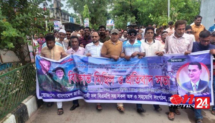 এর আগে মোংলা উপজেলা চত্বর থেকে একটি বিক্ষোভ মিছিল বের হয়ে শহরের প্রধান প্রধান সড়ক প্রদক্ষিণ শেষে পুনরায় মোংলা উপজেলা চত্বরের সামনে এক সমাবেশে মিলিত হন বিএনপির নেতৃবৃন্দ।