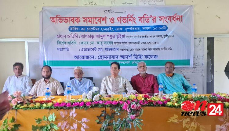 কুমিল্লার নাঙ্গলকোটে হোমনাবাদ আদর্শ ডিগ্রি কলেজ কমিটি নিয়ে আদালতে মামলা চলমান রয়েছে। কিন্তু আদালতের রায়ের আগেই এড. মো: শাহজাহান হাইকোর্টের স্থগিতাদেশ কপি নিয়ে কলেজ হলরুমে গিয়ে কমিটি সংবর্ধনা ও অভিভাবক সমাবেশ আয়োজন করেন। এতে কলেজ সভাপতি জাফর সাদিক ও অধ্যক্ষ মীর জাহাঙ্গীর আলম ক্ষোভ প্রকাশ করেছেন। এসময় তারা বলেন, হাইকোর্টর স্থগিতাদেশের বিরুদ্ধে আমরা সুপ্রিম কোর্টে আপিল করেছি। এখনো কোর্ট কোন কোন সিদ্ধান্ত দেয়নি। পহেলা সেপ্টম্বর আদালত উভয়পক্ষকে ৬ সপ্তাহের সময় বেঁধে দেন।