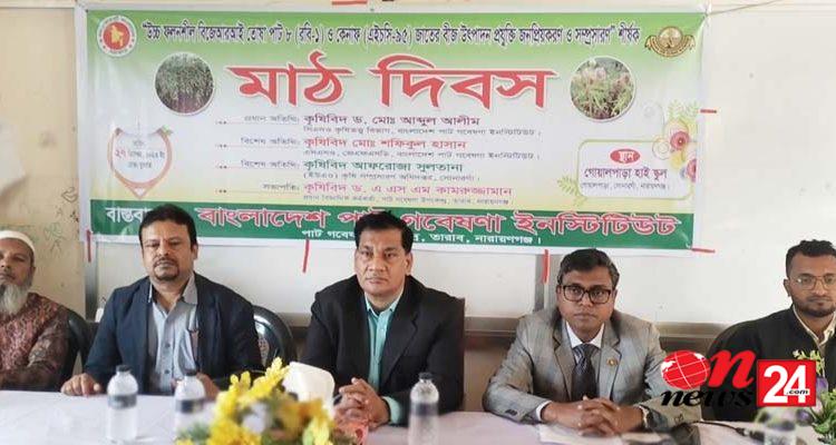 বাংলাদেশ পাট গবেষণা ইনস্টিটিউট কর্তৃক আয়োজিত উচ্চ ফলনশীল জাত বিজেআরআই তোষা পাট-৮ (রবি-১) এর আঁশ উৎপাদন প্রযুক্তি জনপ্রিয়করণ ও সম্প্রসারণের লক্ষ্যে ২৭ডিসেম্বর বুধবার নারায়ণগঞ্জ জেলা সোনারগাঁও উপজেলার গোয়ালপাড়া হাইস্কুল মাঠে দিবস অনুষ্ঠিত হয়।