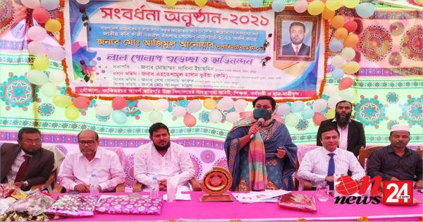 সোমবার (২৯ নভেম্বর)দুপুরে বাংলাদেশ ওয়েলফেয়ার ফাউন্ডেশন কতৃক শিক্ষা ক্ষেত্রে বিশেষ অবদানের জন্য জাতীয় কবি কাজী নজরুল ইসলাম গোল্ডেন এ্যাওয়ার্ড -২০২১,বুড়িচংয়ের কাকিয়ারচর আদর্শ কারিগরি উচ্চ বিদ্যালয়ের সুপারিনটেনডেন্ট জনাব মোঃ আজিমুল আনোয়ার অর্জন করায়,কাকিয়ারচর আদর্শ কারিগরি উচ্চ বিদ্যালয়ের ব্যবস্থাপনা কমিটি,শিক্ষক ও ছাত্র-ছাত্রী কর্তৃক আয়োজিত সংবর্ধনা অনুষ্ঠানে সভাপতির বক্তব্যে এ মন্তব্য করেন তিনি।